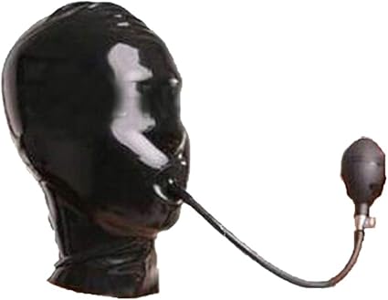 Amazon Com Full Covered Latex Hood With Inflatable Gag Aerate Mouth Plug Rubber Club Mask Clothing