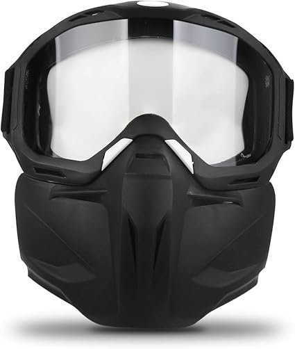 Amazon Com Motorcycle Helmet Riding Goggles Glasses With Removable Face Mask Detachable Fog Proof Warm Goggles Mouth Filter Adjustable Non Slip Strap Vintage Bullet Fight Motocross Black Automotive