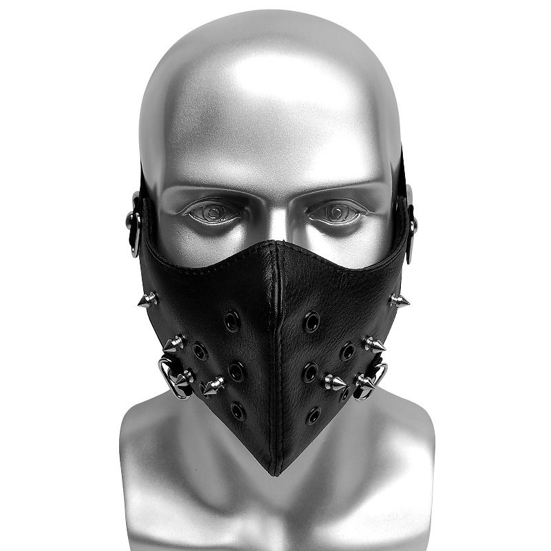 Gothic Black Spike Motorcycle Face Mask Protective Paint Ball Gear Onesize Rock Skull Masks Awesome Prod Punk Accessories Leather Face Mask Skull Pendant