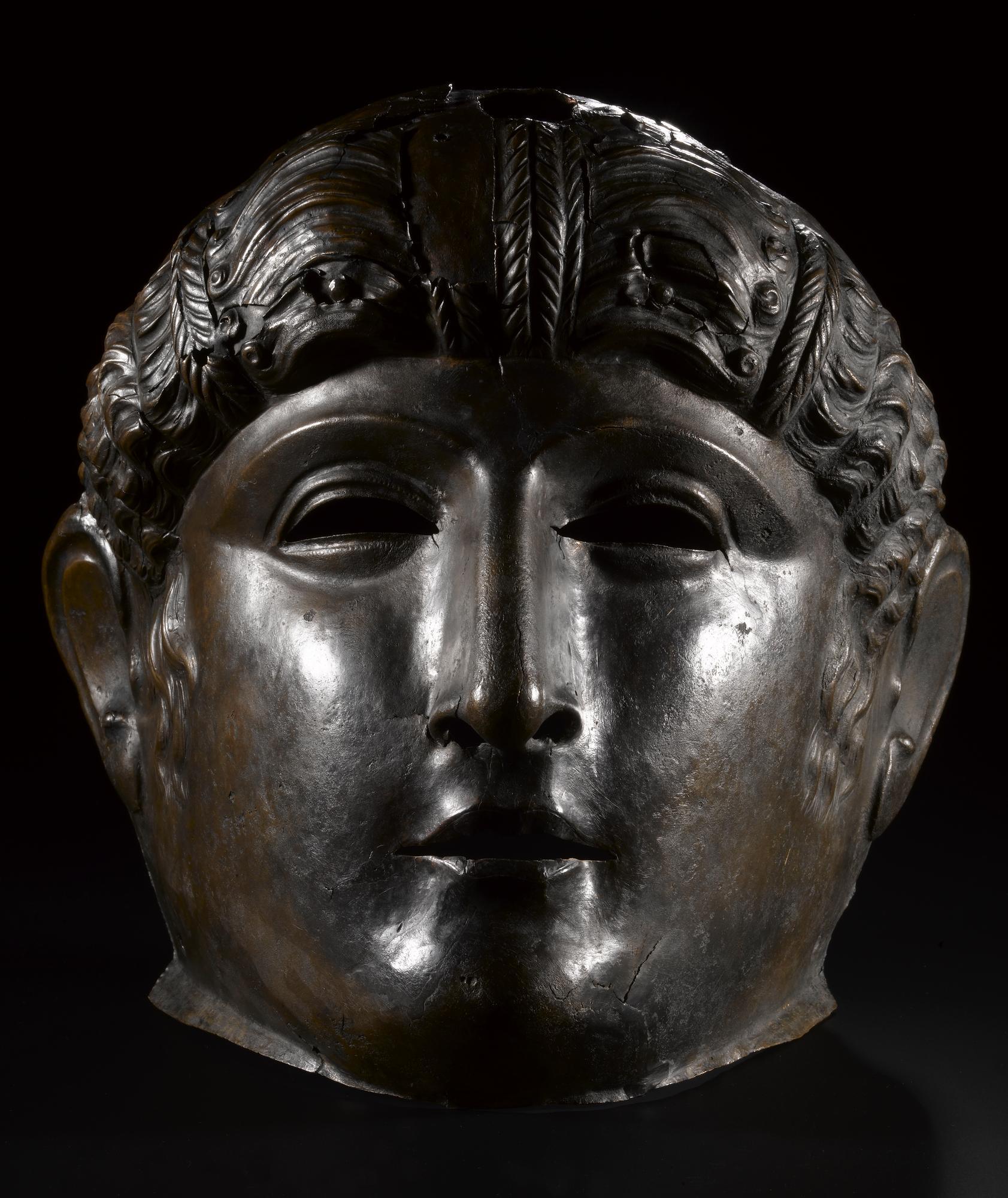 A Cavalry Mask Of A Roman Cavalry Helmet Which Was Once Covered With Silver Ancient Art Ancient Roman Helmet. The face mask features arched eyebrows and an ancient gaze, framed by curls. The emesa helmet (also known as the homs helmet) is a roman cavalry helmet from the early first century ad. Add in the fact that we've found almost as many of these parade helmets as we have normal helmets, and it seems quite possible to me that these masked helmets would sometimes. Made of metle with brass accents. Our roman mask helmet is made from 18ga. The face mask is cast in brass which fully lifts to expose the face. Elmi romani, serie di elmi romani, elmo romano, elmo gallico, elmo imperiale, elmo gladiatore, elmo thraex. It consists of an iron head piece and face mask, the latter of which is covered in a sheet of silver and presents the individualised portrait of a face, likely its owner. We are offering high quality roman face mask helmet. The helmet is topped with a griffin. Please use helmet cotton cap for comfortable wearing, and use helmet stand for the good protection of helmet. This helmet is copied from an original believed to be of german or gallic origin. Helmets with a face mask hinged at the middle of the forehead and two cheek pieces were used in roman legions from about 100 a.d. A roman tombstone in germany even seems to depict an infantry signifer (standard bearer) wearing such a helmet. A christie's employee poses for photographs behind a roman bronze helmet found with the use of a metal detector, at the auction house's offices in london.