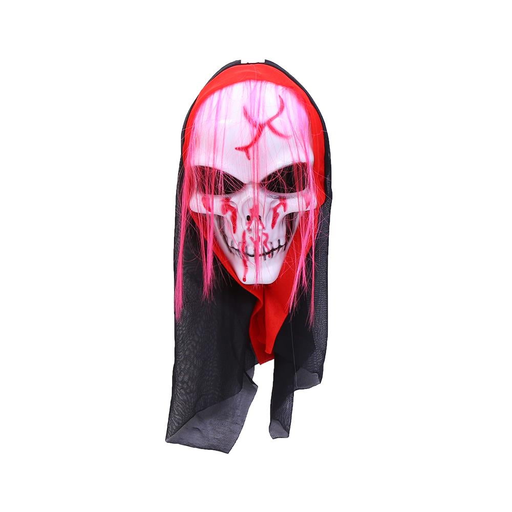 Elegantoss Long Hair Halloween Scary Skull Mask Ghost Mask With Lighted Eyes For Halloween Party Cosplay Yellow Hair Walmart Com Walmart Com