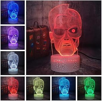 Amazon Com Terminator Face Mask Cartoon Lamp For Boy Arnold Schwarzenegger Figure Comic 3d Optical Illusion Led Night Light 7 Color Smart Touch Change Decor Holiday Party Mood Lava Xmas Gift For Friend