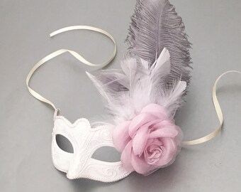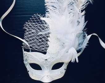 White Feather Mask Etsy